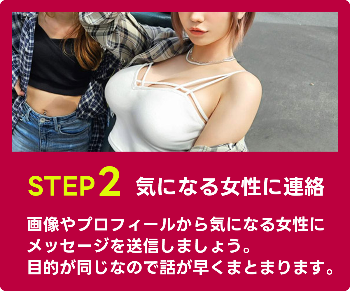 LINE友達登録だけで準備OK! 登録者はすぐにでもSEXしたい人ばかり! 気になる女性には即連絡を! 相手からお誘いが来ることも!